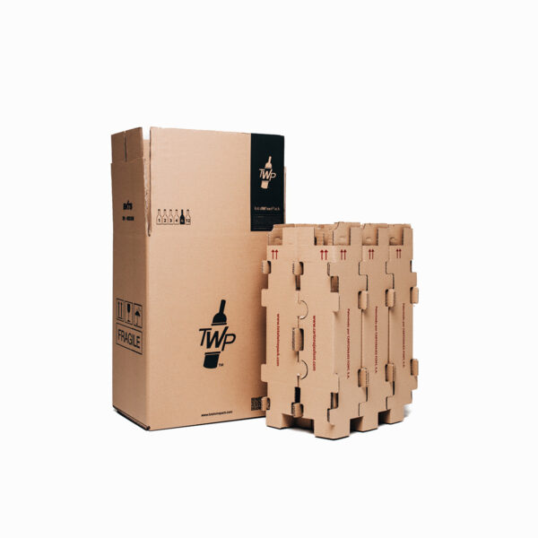 Nuestras cajas de cartón para botellas son únicas en el mundo. Este producto está fabricado en cartón ondulado y su diseño mediante separadores y corte ha sido conceptualizado por expertos con el objetivo de minimizar el riesgo de roturas en el transporte de botellas de vidrio. Con los embalajes premium TSP, hemos logrado reducir en un 95% el índice de rotura de botellas en comparación a los embalajes convencionales o estándar disponibles en el mercado.